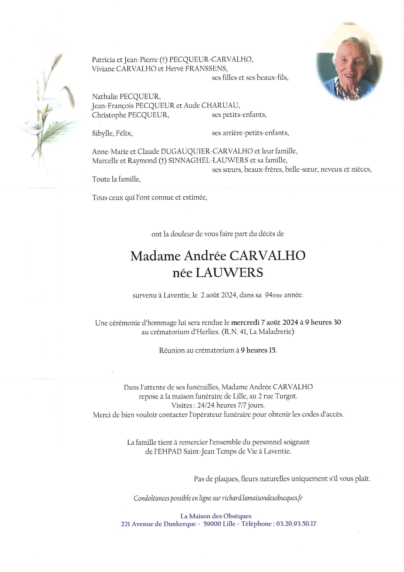 Madame Andrée CARVALHO née LAUWERS