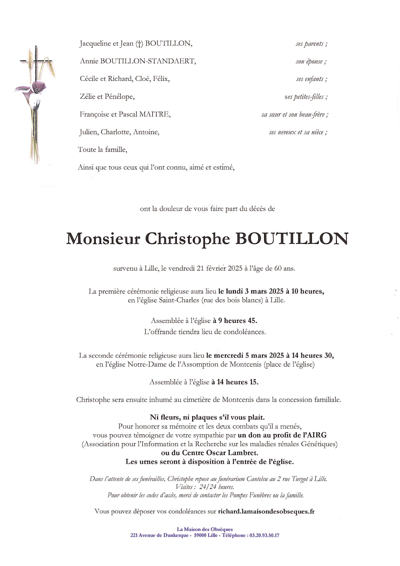 Décédé à Lille (59000, France) le vendredi 21 février 2025 à l'âge de 60 ans