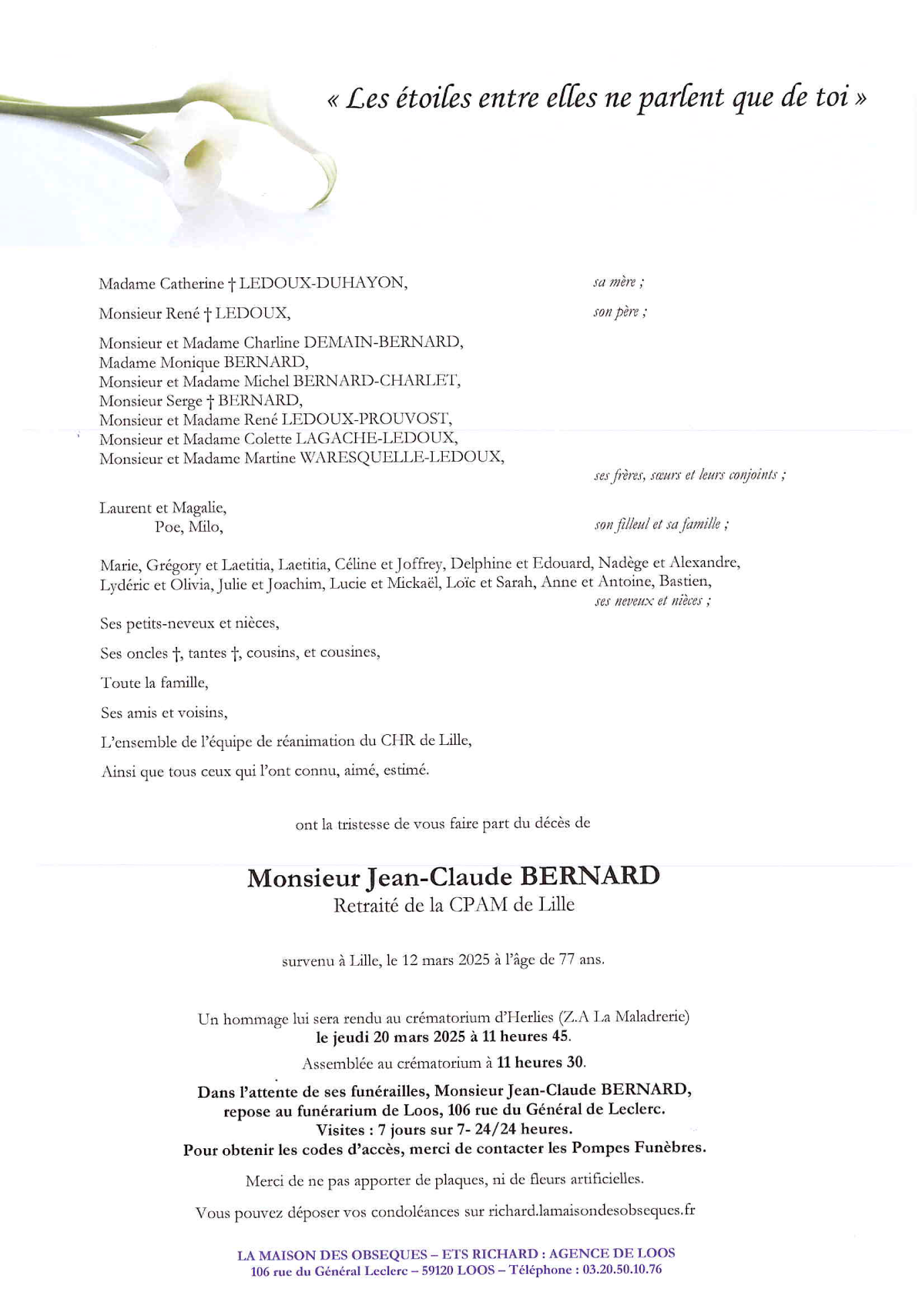 Décédé à Lille (59000, France) le mercredi 12 mars 2025 à l'âge de 77 ans