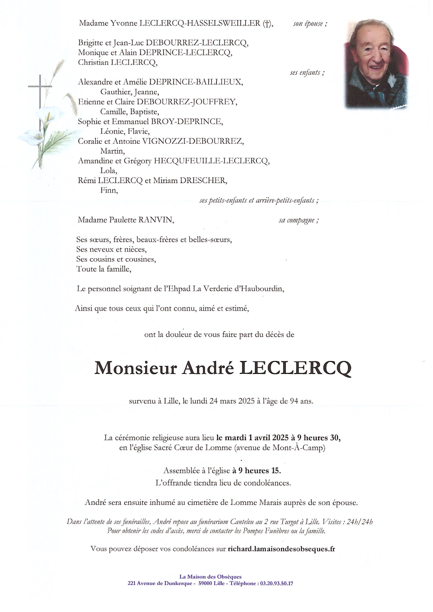Décédé à Lille (59000, France) le lundi 24 mars 2025 à l'âge de 94 ans