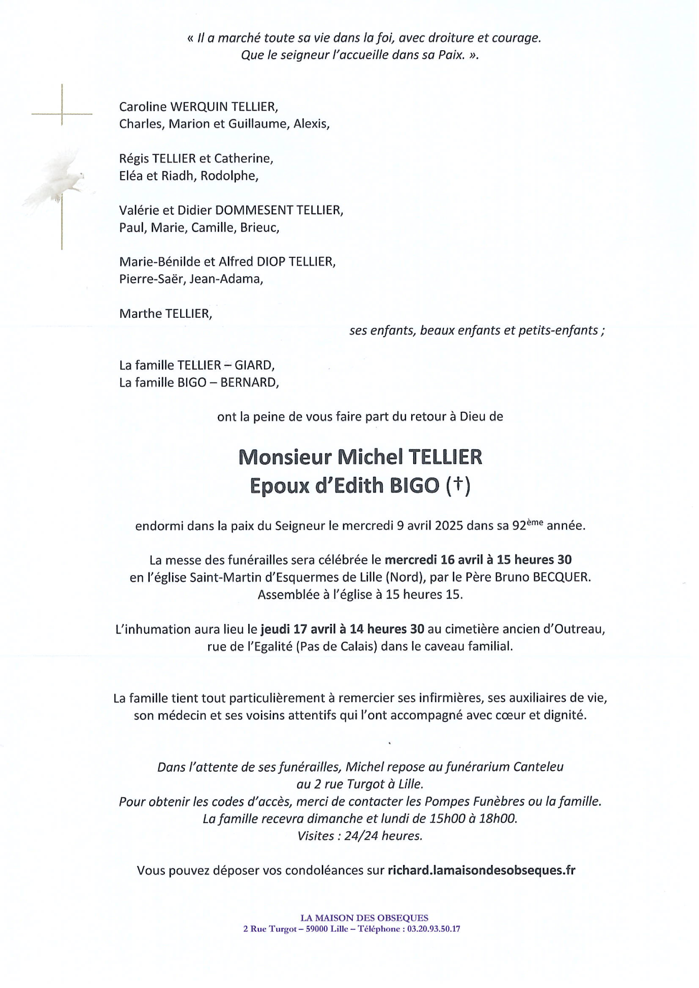 Décédé à Lille (59000, France) le mercredi 9 avril 2025 à l'âge de 91 ans