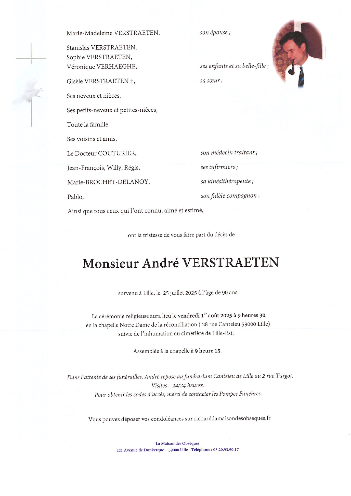 Décédé à Lille (59000, France) le vendredi 25 juillet 2025 à l'âge de 90 ans