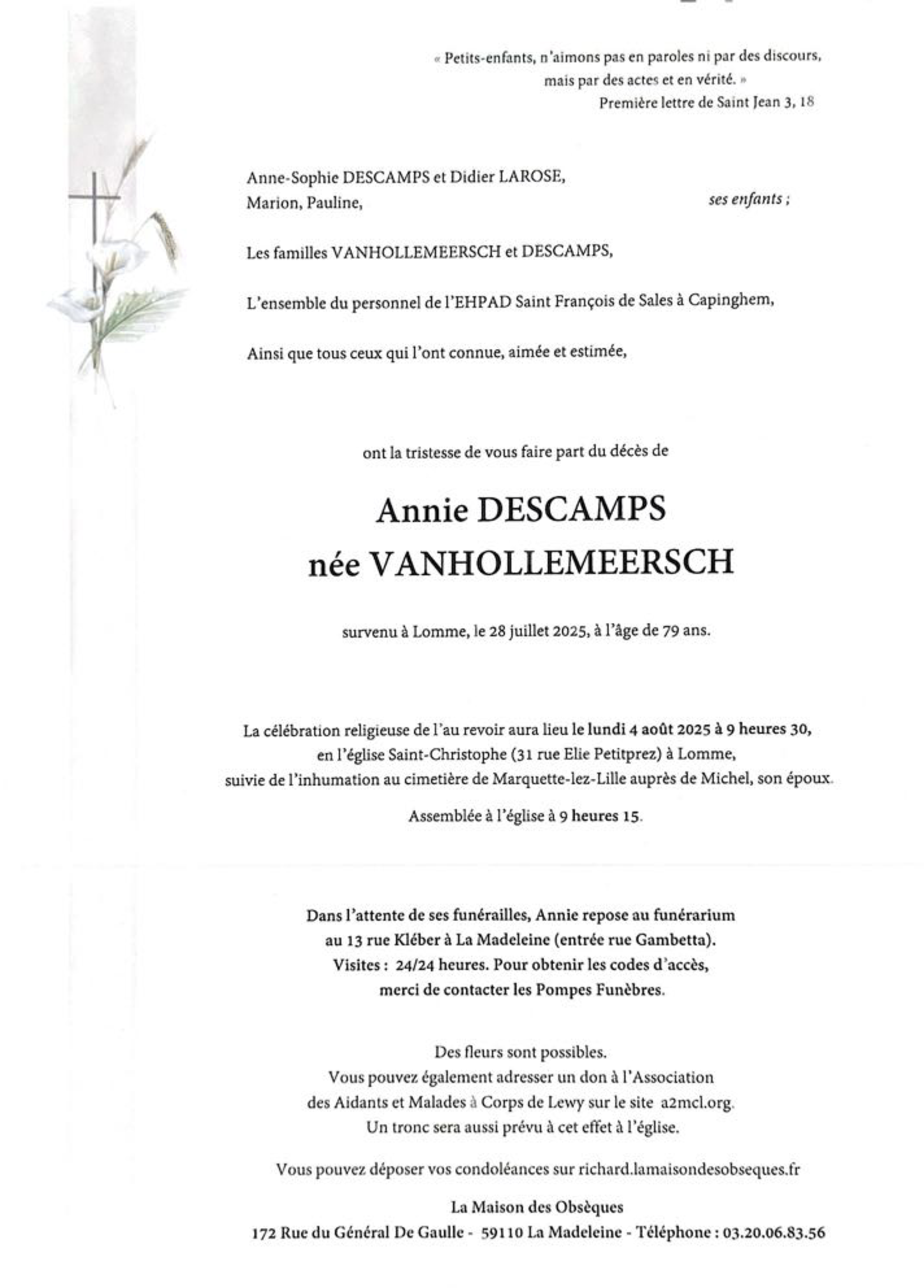 Décédée à « Localité inconnue »  (France) le lundi 28 juillet 2025 à l'âge de 79 ans