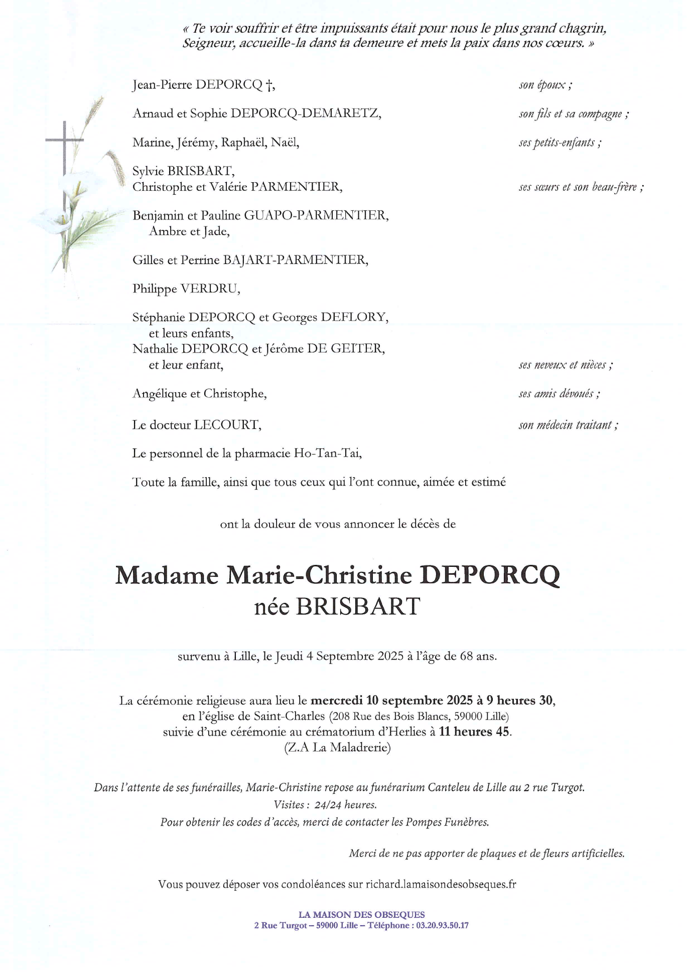Veuve de Monsieur Jean-Pierre DEPORCQ