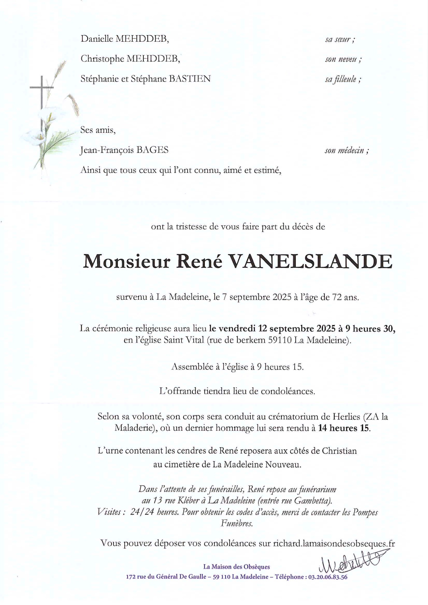 Décédé à La Madeleine (59110, France) le dimanche 7 septembre 2025 à l'âge de 72 ans