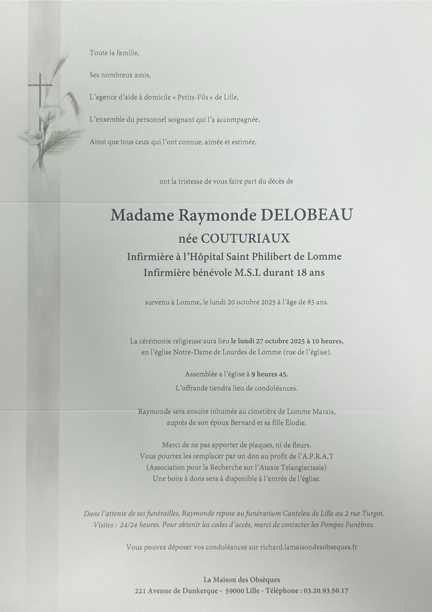 Décédée à Lomme (59160, France) le lundi 20 octobre 2025 à l'âge de 85 ans