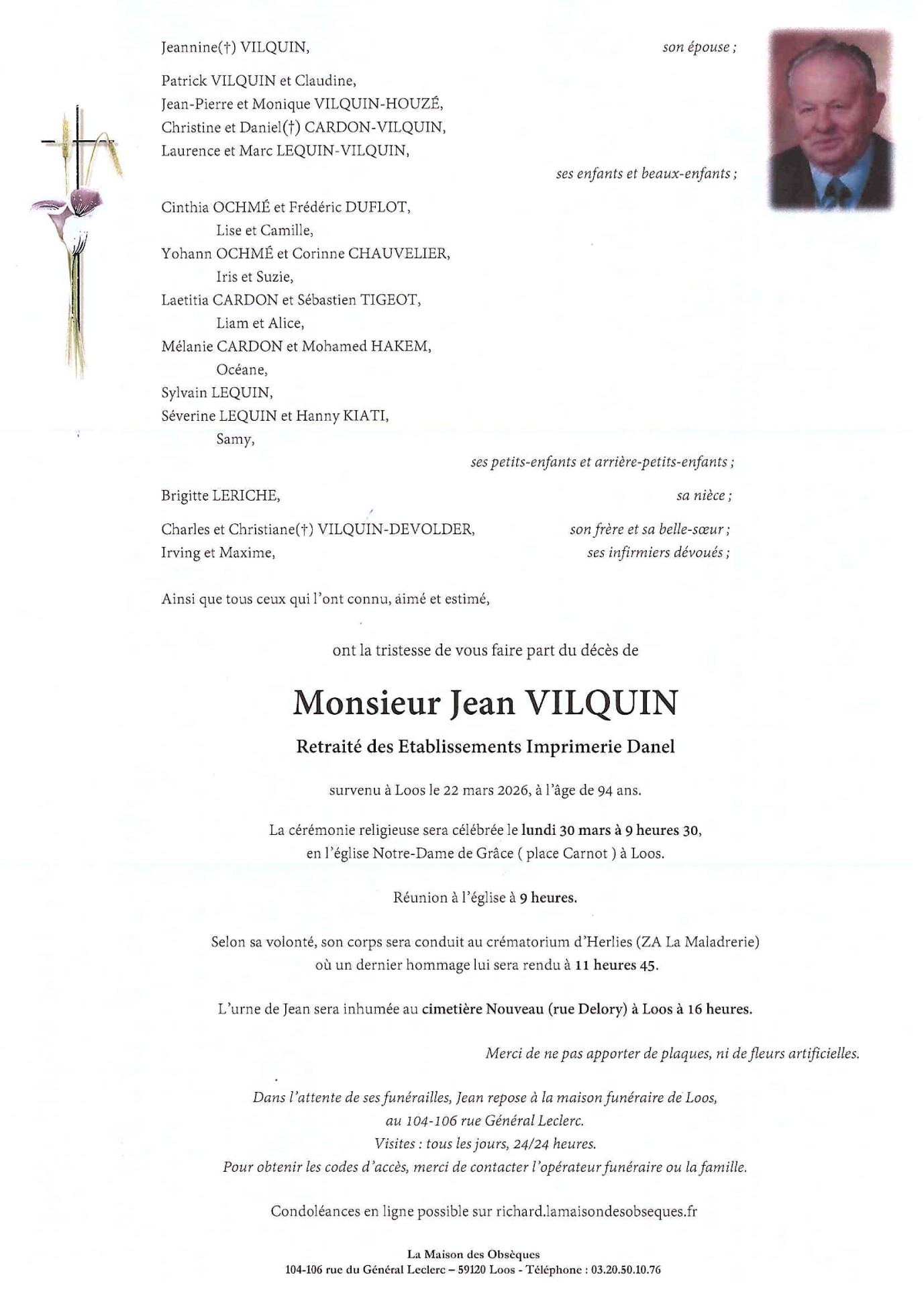 Décédé à Loos (59120, France) le dimanche 22 mars 2026 à l'âge de 94 ans
