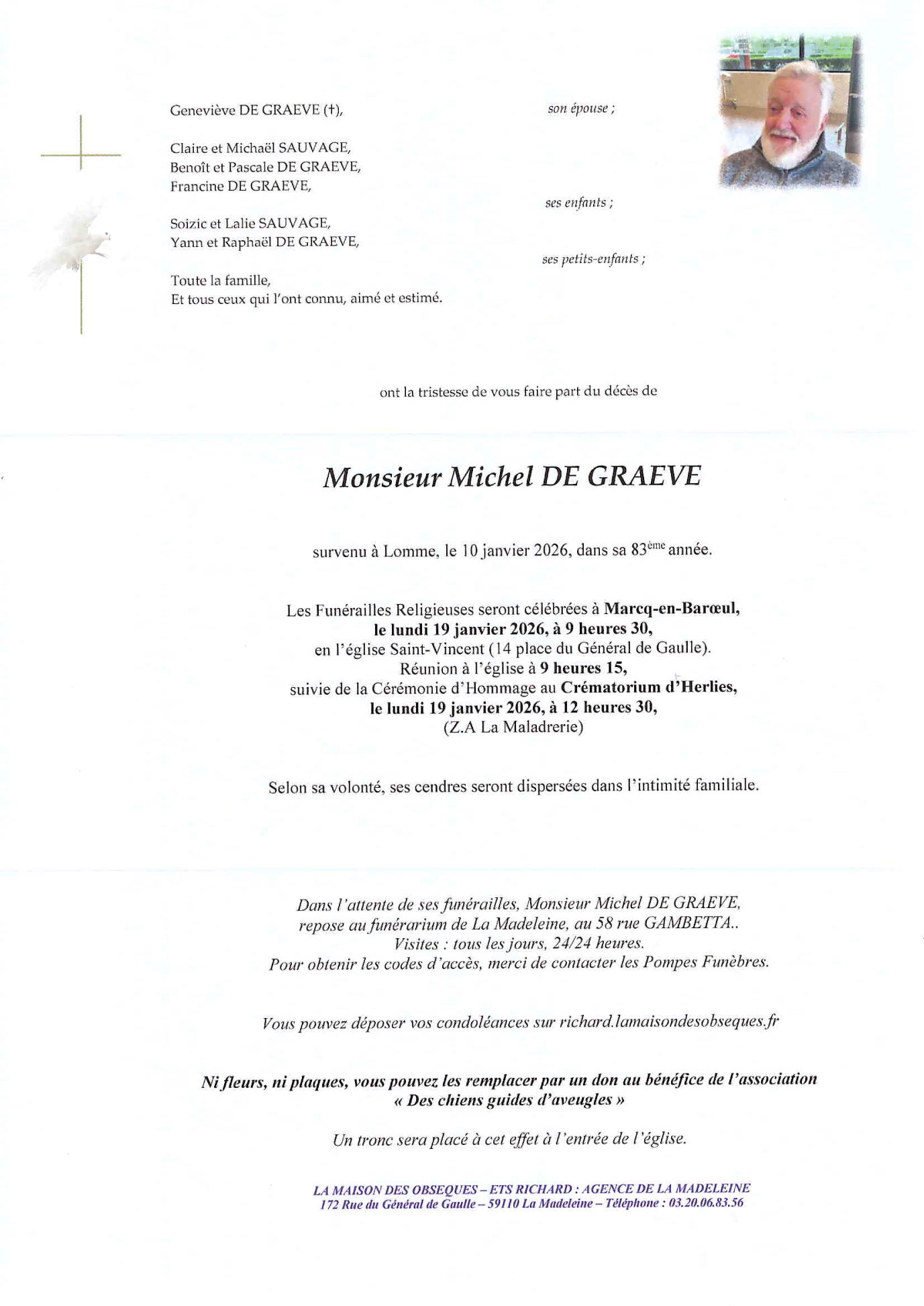 Décédé à Lomme (59160, France) le samedi 10 janvier 2026 à l'âge de 83 ans