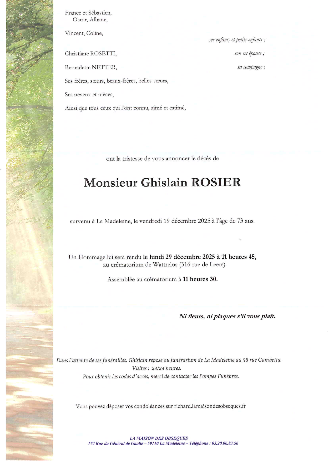 Décédé à La Madeleine (59110, France) le vendredi 19 décembre 2025 à l'âge de 73 ans
